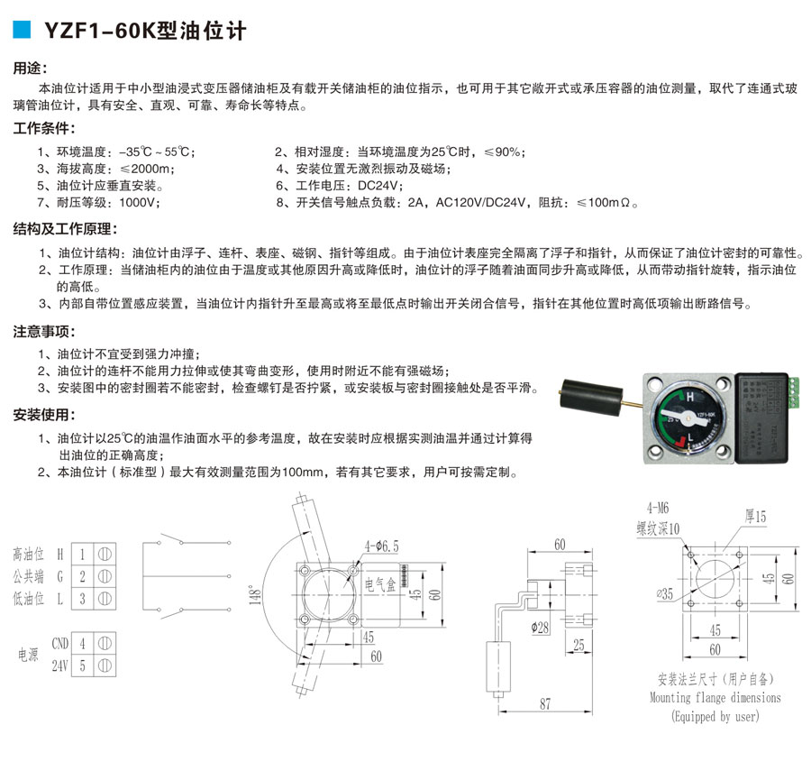 YZF1-60K Oil Level Meter