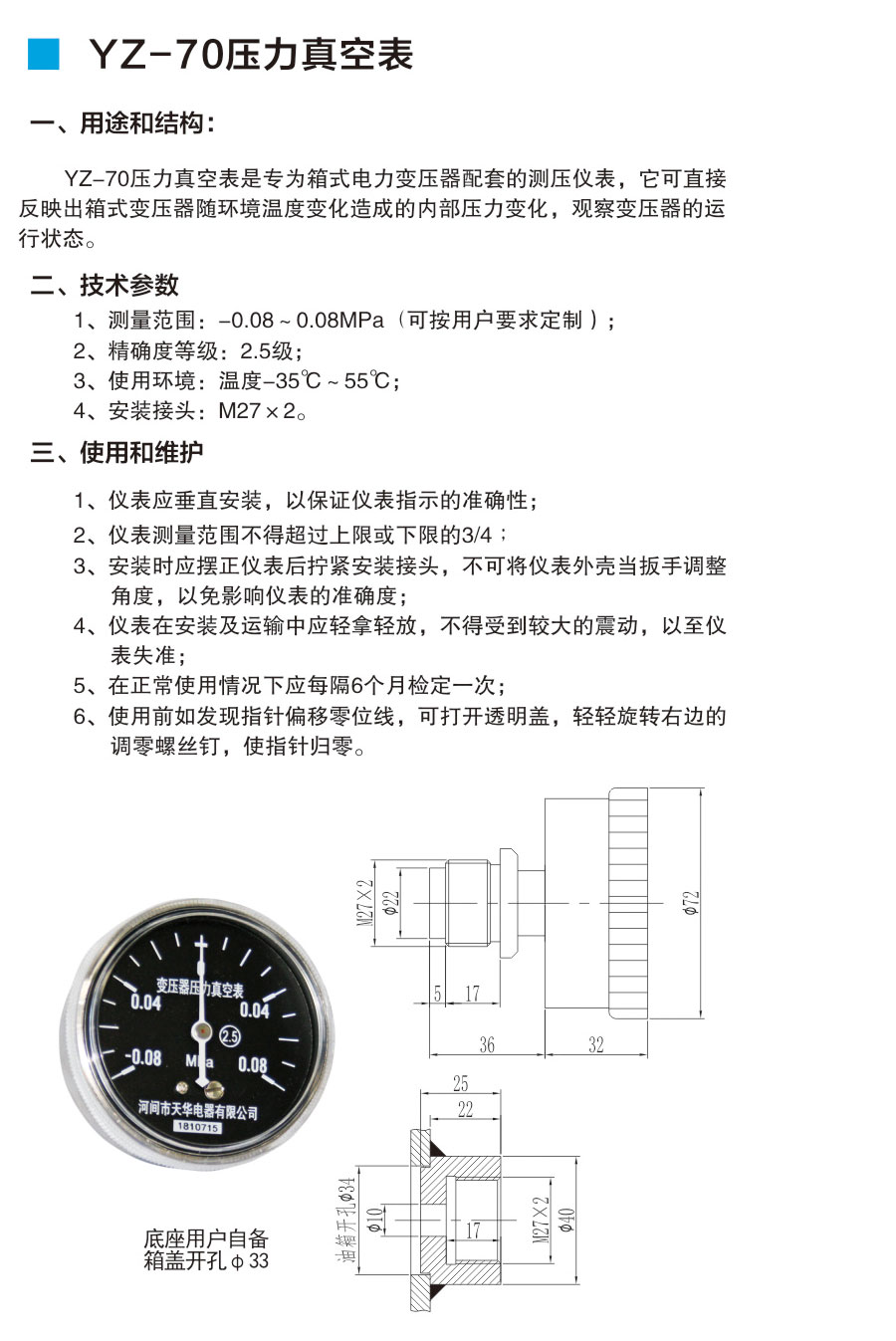 YZ-70 Pressure Vacuum Meter