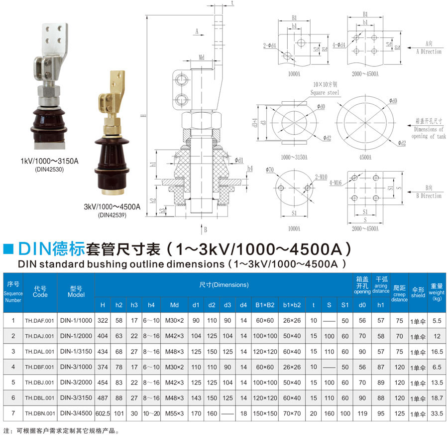 DIN standard bushing 1~3kV/1000~4500A