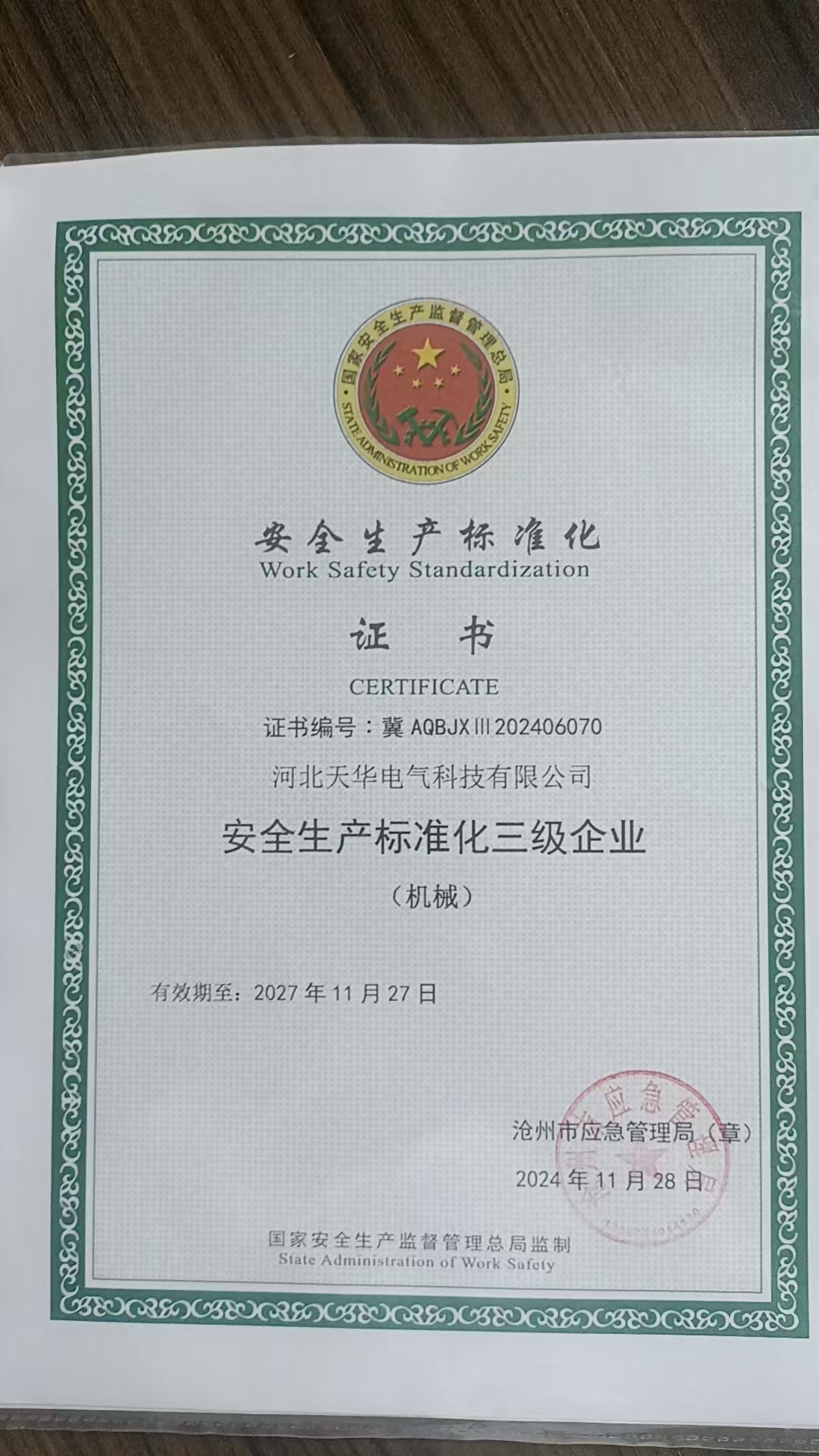 安全生產(chǎn)標(biāo)準(zhǔn)化三級企業(yè)