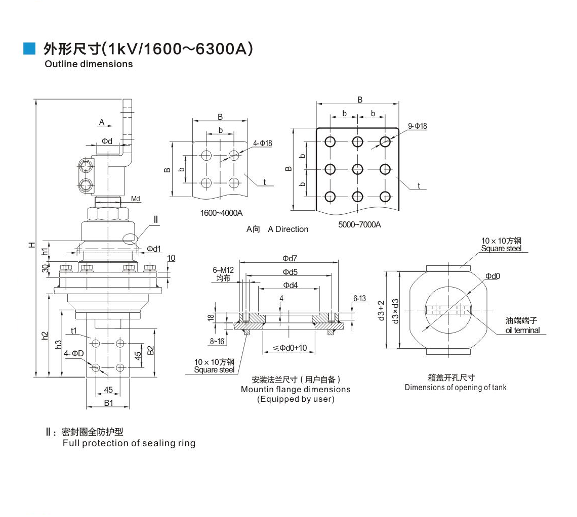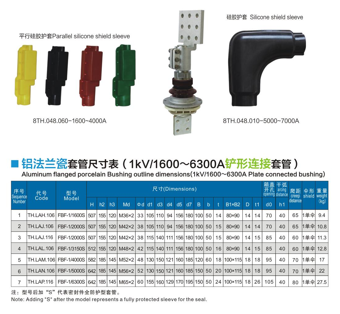 鋁法蘭瓷套管1kV/1600~6300A鏟形連接套管
