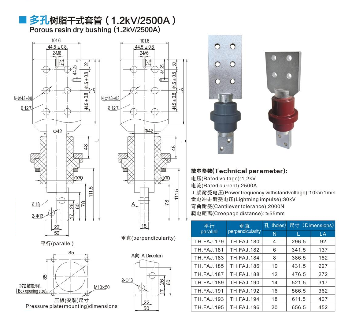 多孔樹脂干式套管1.2kV/2500A