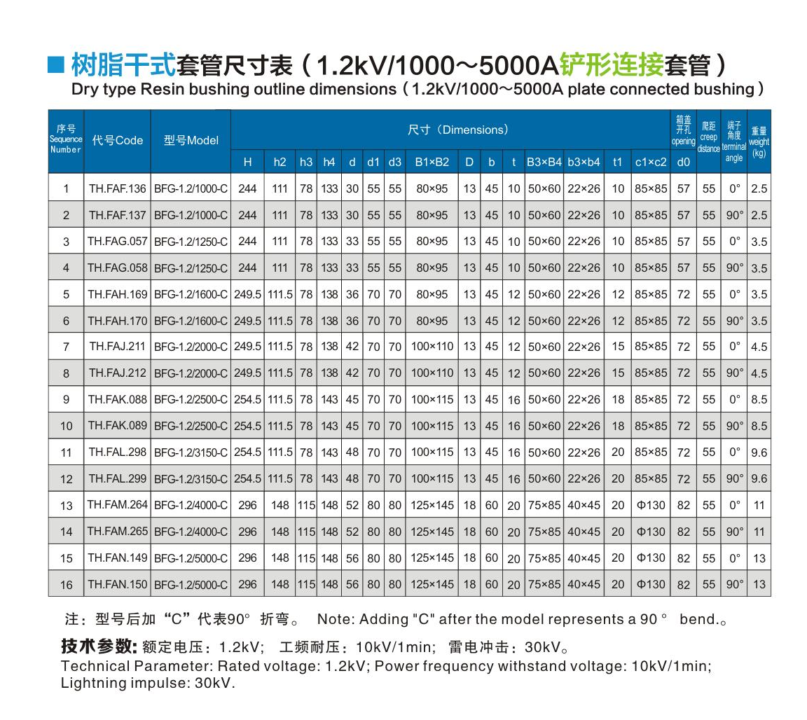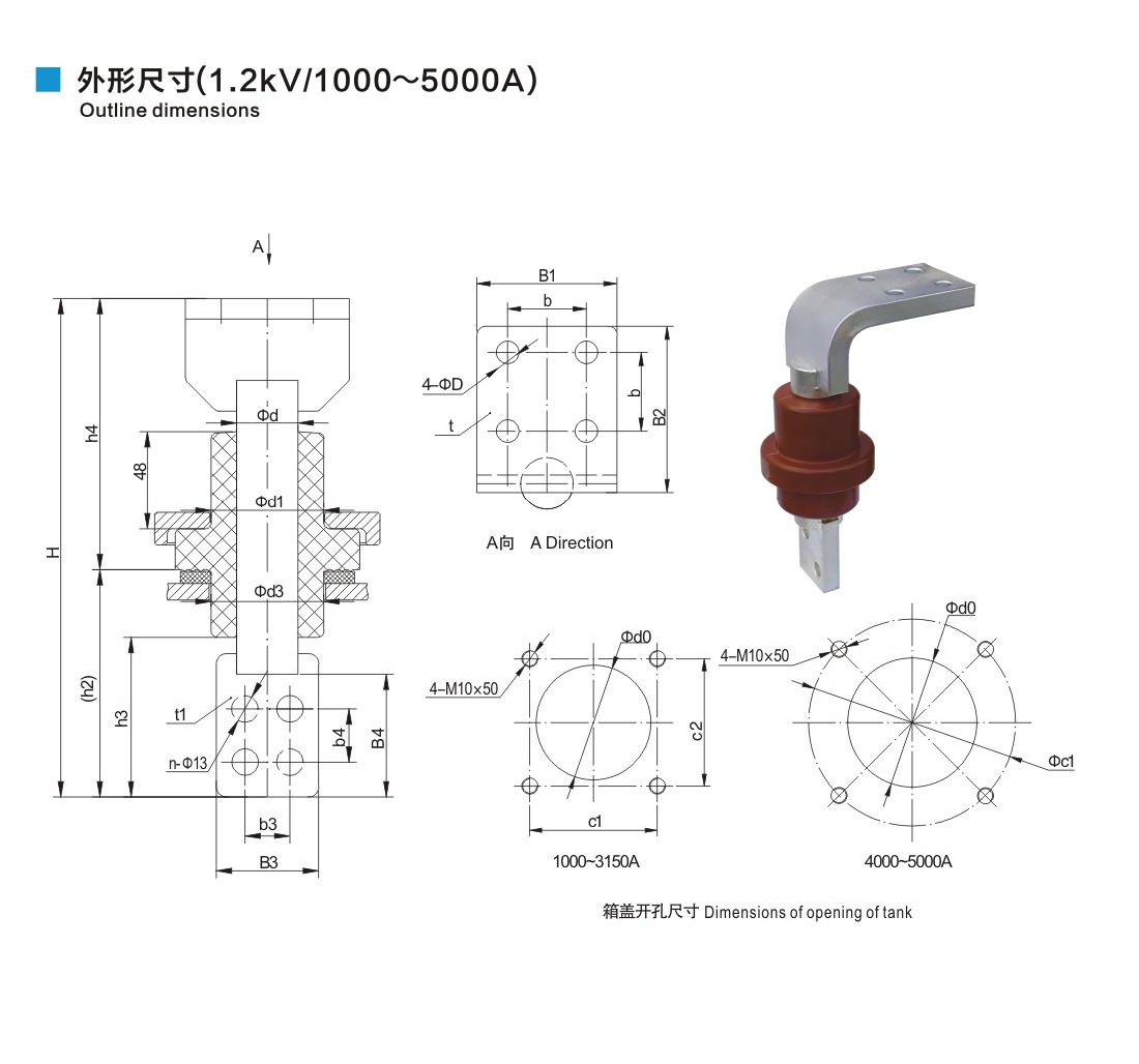 樹(shù)脂干式套管1.2kV/1000~5000A鏟形連接