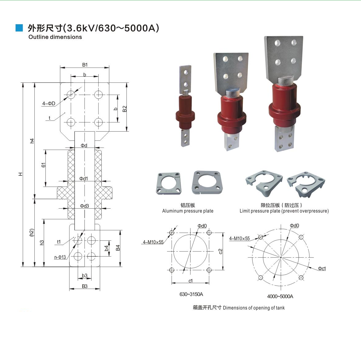 樹脂干式套管3.6kV/630~5000A鏟形連接套管
