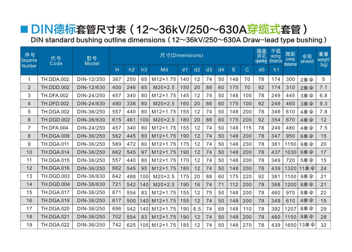 DIN德標套管12~36kV/250~630A穿纜式套管